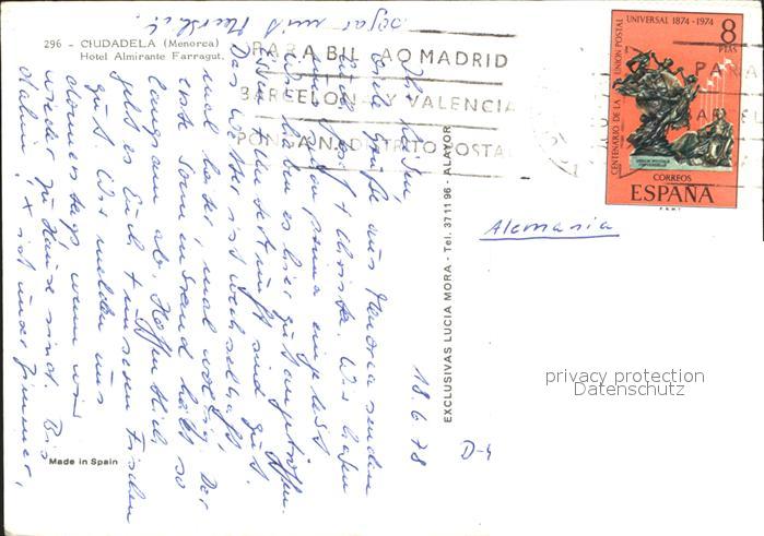 old postcard Ciudadela Hotel Almirante Farragut postalisch gelaufen Erhaltung siehe scans