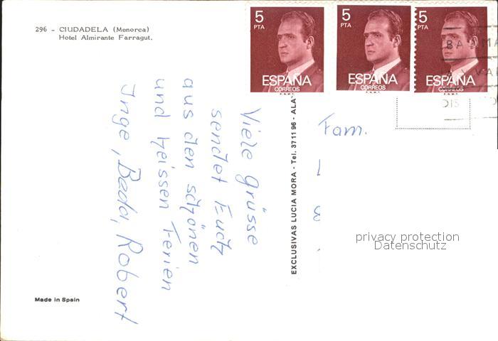 old postcard Ciudadela Hotel Almirante Farragut postalisch gelaufen Erhaltung siehe scans