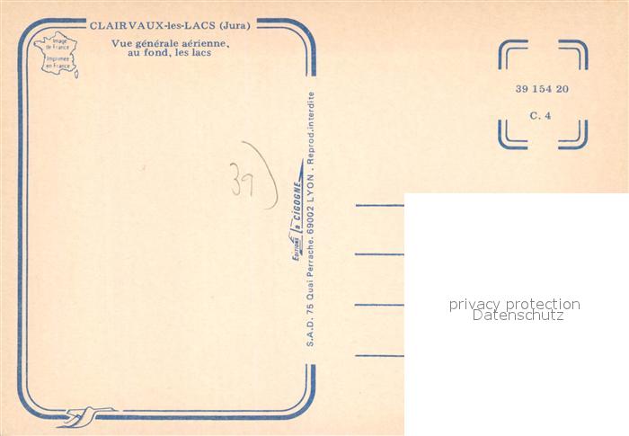 13160499 Clairvaux-les-Lacs Fliegeraufnahme postalisch nicht gelaufen Erhaltung siehe scans [LiesaD40] KatCode: 11170039239154