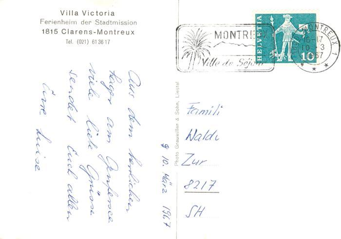 13863843 alte Postkarte Clarens Montreux VD Pension Villa Victoria Ferienheim der Stadtmission postalisch gelaufen Erhaltung siehe scans [FriedD77] KatCode: 11470240845874