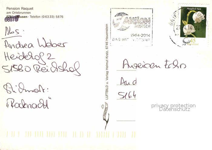72845372 alte Postkarte Clausen Pirmasens Pension Raquet postalisch gelaufen Erhaltung siehe scans [AndreD76] KatCode: 11110007340003