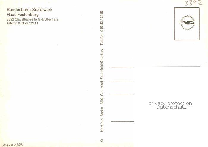 72887542 Clausthal-Zellerfeld Bundesbahn Sozialwerk Haus Festenburg postalisch nicht gelaufen Erhaltung siehe scans [WerneD78] KatCode: 11110003153004