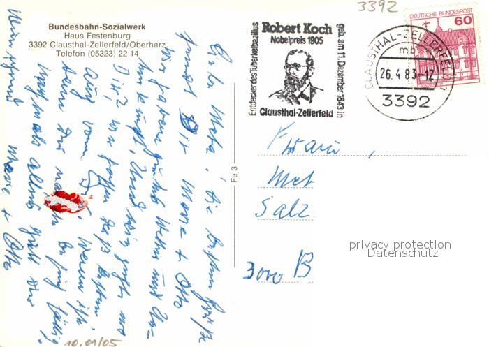 72887535 alte Postkarte Clausthal-Zellerfeld Bundesbahn Sozialwerk Haus Festenburg postalisch gelaufen Erhaltung siehe scans [WerneD78] KatCode: 11110003153004