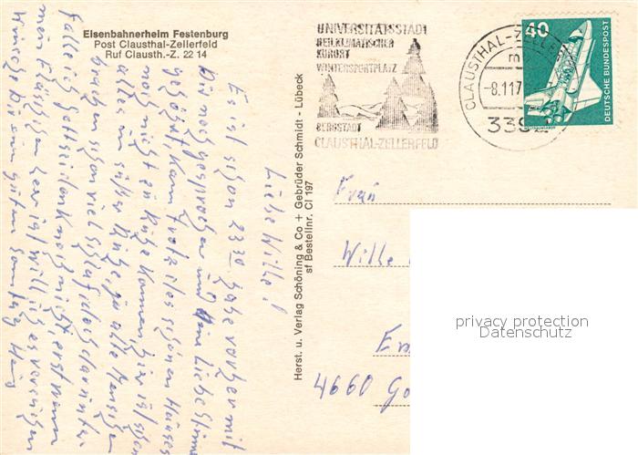 73105485 alte Postkarte Clausthal-Zellerfeld Eisenbahnerheim Festenburg postalisch gelaufen Erhaltung siehe scans [WerneD78] KatCode: 11110003153004