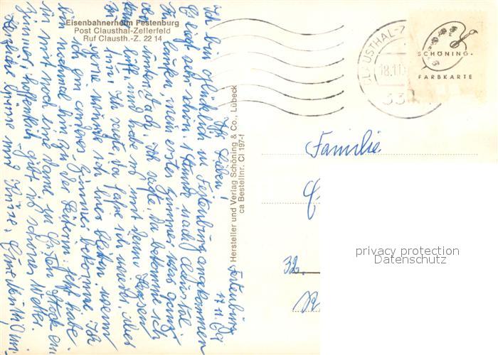 72946736 alte Postkarte Clausthal-Zellerfeld Eisenbahnerheim Festenburg postalisch gelaufen Erhaltung siehe scans [KathaD81] KatCode: 11110003153004