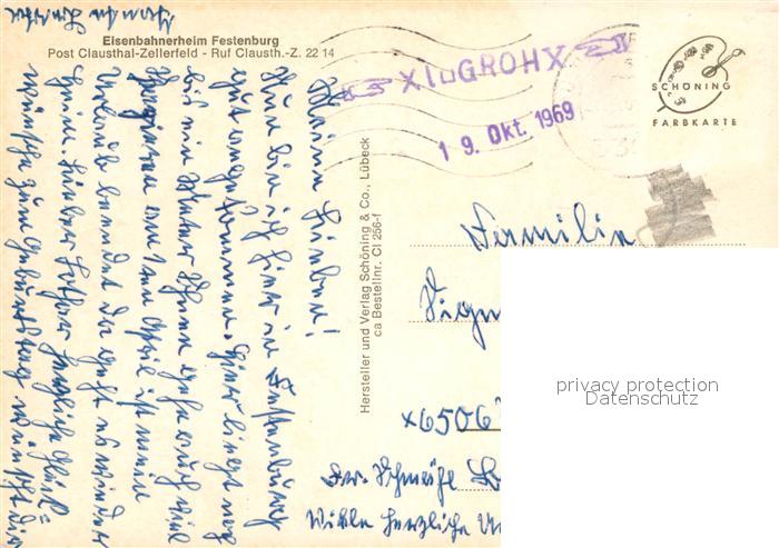 72943044 alte Postkarte Clausthal-Zellerfeld Eisenbahnerheim Festenburg postalisch gelaufen Erhaltung siehe scans [KathaD81] KatCode: 11110003153004