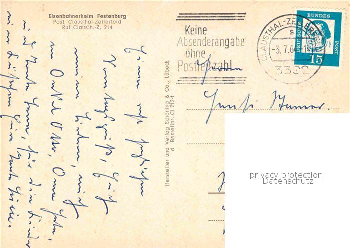 72900985 alte Postkarte Clausthal-Zellerfeld Eisenbahnerheim Festenburg postalisch gelaufen Erhaltung siehe scans [WerneD78] KatCode: 11110003153004