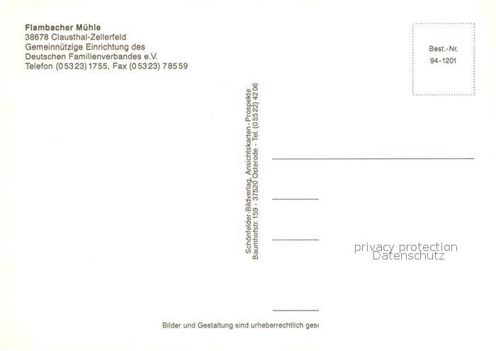 72961088 Clausthal-Zellerfeld Flambacher Muehle Deutscher Familienverband eV postalisch nicht gelaufen Erhaltung siehe scans [FriedD77] KatCode: 11110003153004