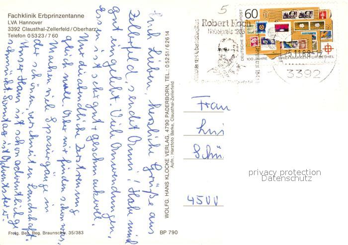 73131472 alte Postkarte Clausthal-Zellerfeld Fliegeraufnahme Fachklinik Erbprinzentanne postalisch gelaufen Erhaltung siehe scans [NatalD47] KatCode: 11110003153004