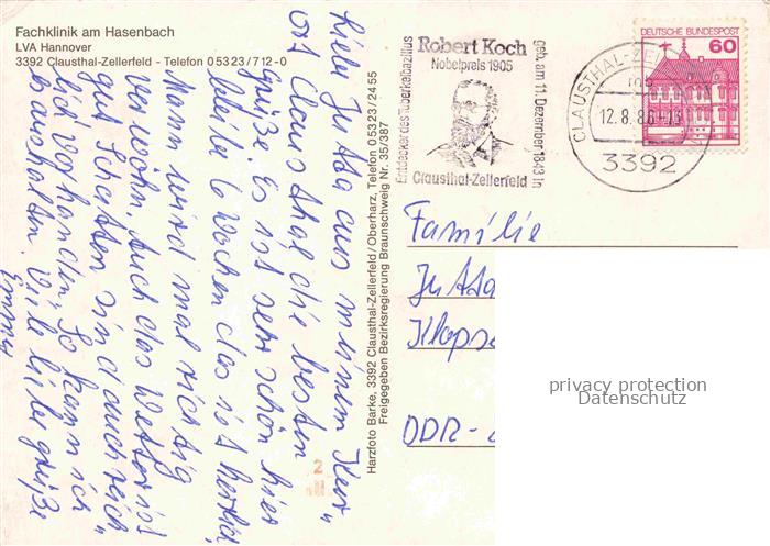 74044135 alte Postkarte Clausthal-Zellerfeld Goslar Fachklinik am Hasenbach LVA Hannover Fliegeraufnahme postalisch gelaufen Erhaltung siehe scans [WerneD78] KatCode: 11110003153004