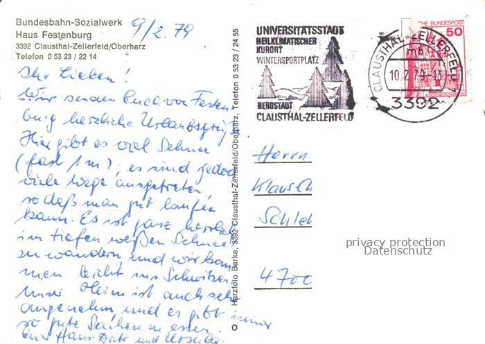 Clausthal-Zellerfeld Goslar Niedersachsen Bundesbahn Sozialwerk Haus Festenburg Verschneite Strassen postalisch gelaufen Erhaltung siehe scans [WerneD78] alte Postkarte Wern Katcode 11110003153004