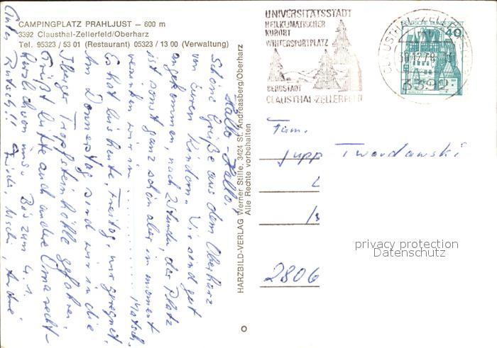 71945547 alte Postkarte Clausthal-Zellerfeld Goslar Niedersachsen Camping Prahljust postalisch gelaufen Erhaltung siehe scans KatCode: 11110003153004