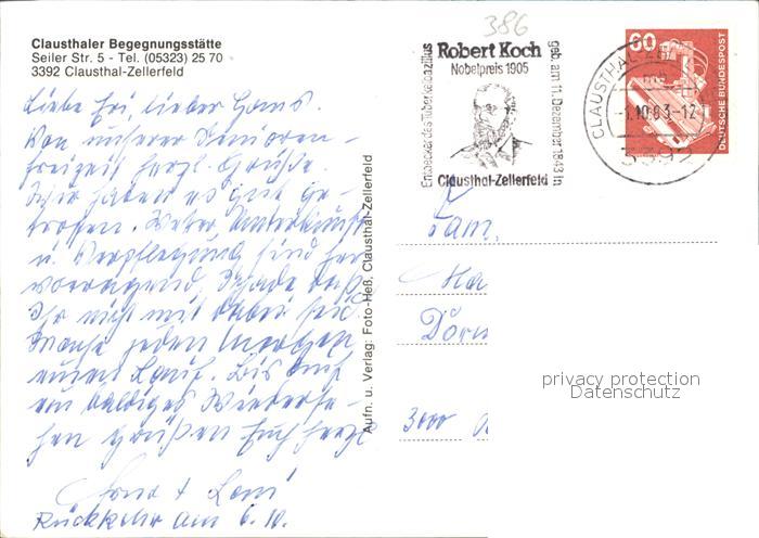 72603419 alte Postkarte Clausthal-Zellerfeld Goslar Niedersachsen Clausthaler Begegnungsstaette der evangelisch methodistischen Kirche postalisch gelaufen Erhaltung siehe scans [FriedD77] KatCode: 11110003153004