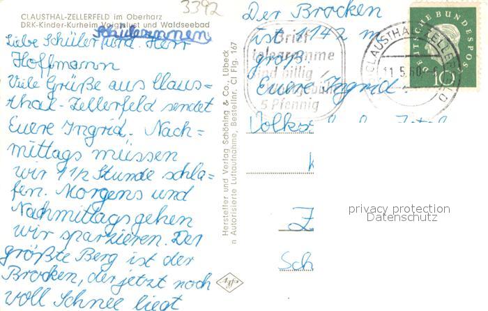 73693176 Clausthal-Zellerfeld Goslar Niedersachsen DRK Kinderkurheim Voigtslust und Waldseebad postalisch gelaufen Erhaltung siehe scans [WerneD78] alte Postkarte Wern Katcode 11110003153004