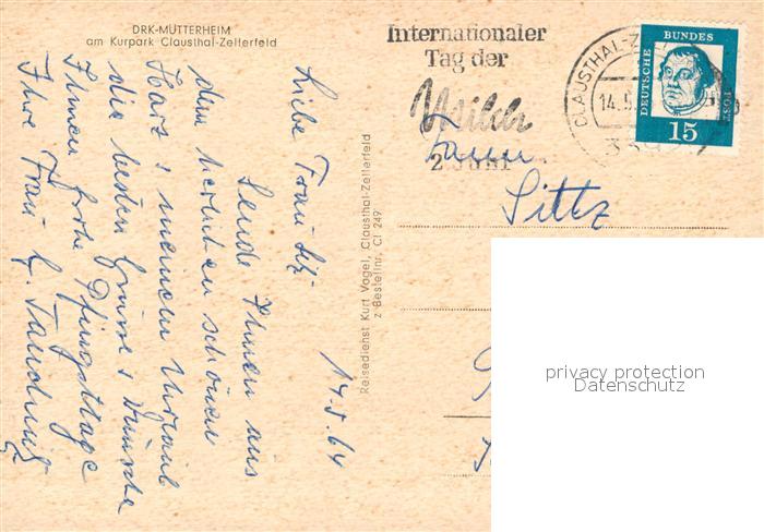 43352560 Clausthal-Zellerfeld Goslar Niedersachsen DRK Muetterheim am Kurpark postalisch gelaufen Erhaltung siehe scans [WerneD78] alte Postkarte Wern Katcode 11110003153004