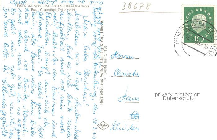 73762364 Clausthal-Zellerfeld Goslar Niedersachsen Eisenbahnerheim Festenburg postalisch gelaufen Erhaltung siehe scans [FriedD77] alte Postkarte Frie Katcode 11110003153004