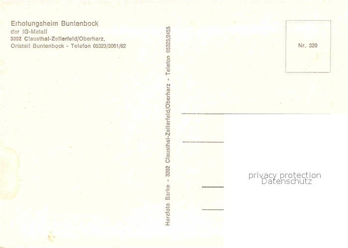 72777945 Clausthal-Zellerfeld Goslar Niedersachsen Erholungsheim Buntenbock postalisch nicht gelaufen Erhaltung siehe scans [KathaD81] KatCode: 11110003153004