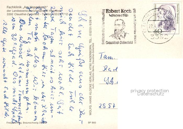73720520 Clausthal-Zellerfeld Goslar Niedersachsen Fachklinik Am Hasenbach der LVA Hannover postalisch gelaufen Fliegeraufnahme Erhaltung siehe scans [FriedD77] Fliegeraufnahme alte Postkarte Frie Katcode 11110003153004