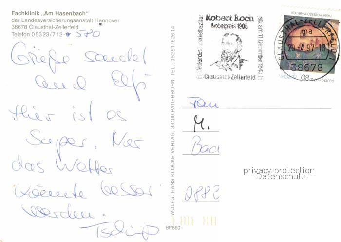 72798754 alte Postkarte Clausthal-Zellerfeld Goslar Niedersachsen Fachklinik Am Hasenbach Fliegeraufnahme postalisch gelaufen Erhaltung siehe scans [FriedD77] KatCode: 11110003153004