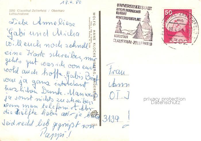 73765579 Clausthal-Zellerfeld Goslar Niedersachsen Fliegeraufnahme postalisch gelaufen Erhaltung siehe scans [WerneD78] alte Postkarte Wern Katcode 11110003153004
