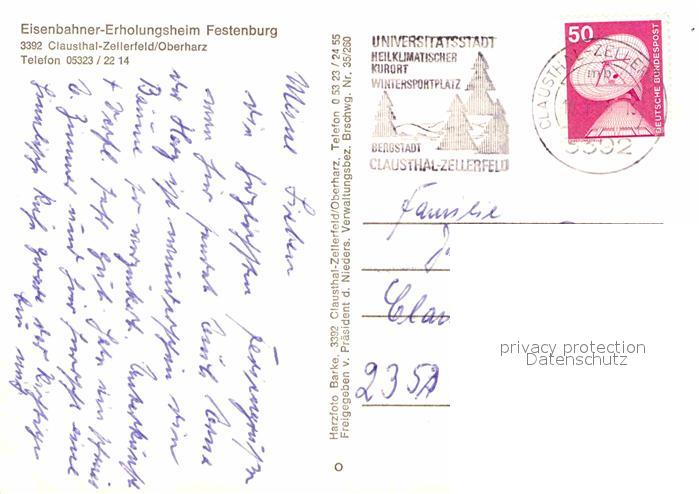 72839579 alte Postkarte Clausthal-Zellerfeld Goslar Niedersachsen Fliegeraufnahme Eisenbahner Erholungsheim Festenburg postalisch gelaufen Erhaltung siehe scans [AndreD76] KatCode: 11110003153004