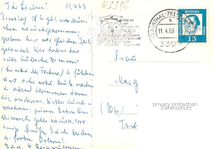73732403 Clausthal-Zellerfeld Goslar Niedersachsen Gasthaus postalisch gelaufen Erhaltung siehe scans [FriedD77] alte Postkarte Frie Katcode 11110003153004