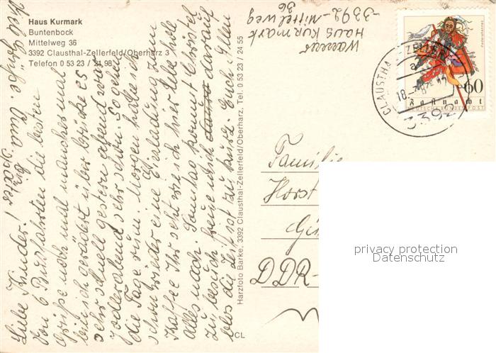 73743752 Clausthal-Zellerfeld Goslar Niedersachsen Haus Kurmark postalisch gelaufen Erhaltung siehe scans [FriedD77] alte Postkarte Frie Katcode 11110003153004