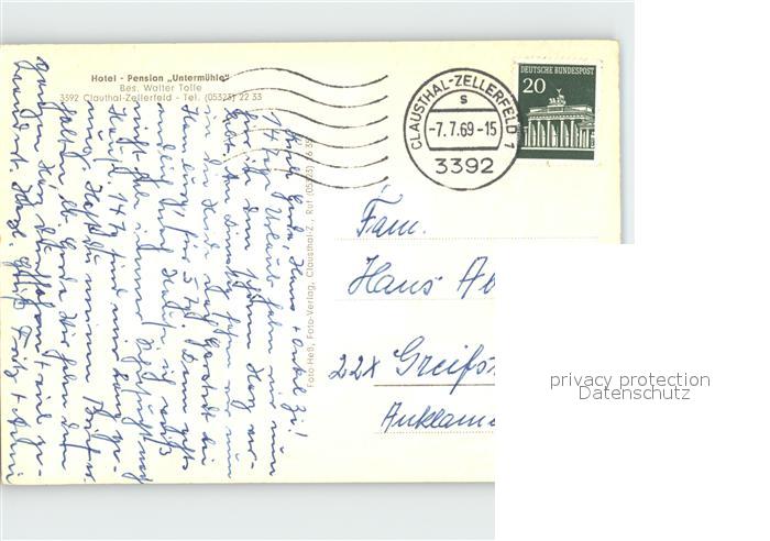 72038648 alte Postkarte Clausthal-Zellerfeld Goslar Niedersachsen Hotel Pension Untermuehle postalisch gelaufen Erhaltung siehe scans KatCode: 11110003153004