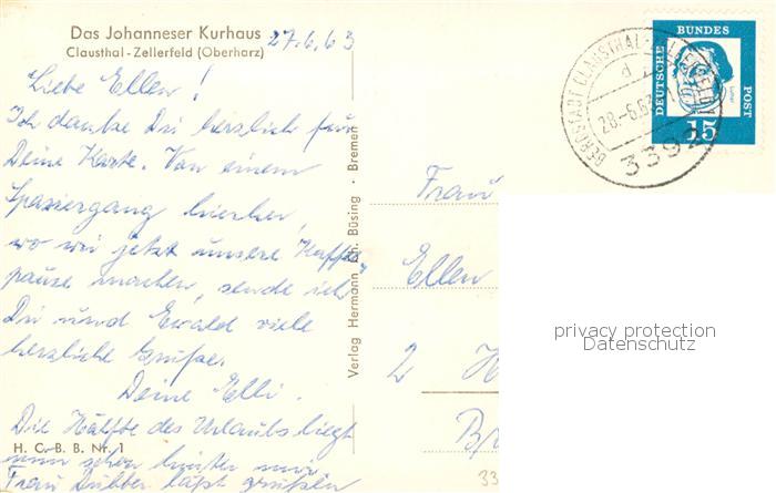 73795506 Clausthal-Zellerfeld Goslar Niedersachsen Johanneser Kurhaus postalisch gelaufen Erhaltung siehe scans [WerneD78] alte Postkarte Wern Katcode 11110003153004