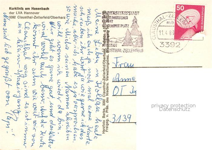 73765580 Clausthal-Zellerfeld Goslar Niedersachsen Kurklinik am Hasenbach der LVA Hannover postalisch gelaufen Erhaltung siehe scans [WerneD78] alte Postkarte Wern Katcode 11110003153004