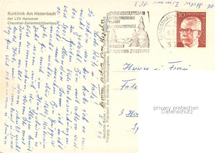 73712122 Clausthal-Zellerfeld Goslar Niedersachsen Kurklinik Am Hasenbach der LVA Hannover Fliegeraufnahme postalisch gelaufen Erhaltung siehe scans [WerneD78] alte Postkarte Wern Katcode 11110003153004