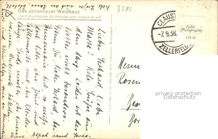 71564841 alte Postkarte Clausthal-Zellerfeld Goslar Niedersachsen Luftaufnahme vom Johanneser Waldhaus postalisch gelaufen Erhaltung siehe scans KatCode: 11110003153004