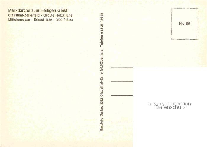 72691341 Clausthal-Zellerfeld Goslar Niedersachsen Marktkirche zum Heiligen Geist Groesste Holzkirche Mitteleuropas 17. Jhdt. postalisch nicht gelaufen Erhaltung siehe scans [FriedD77] KatCode: 11110003153004