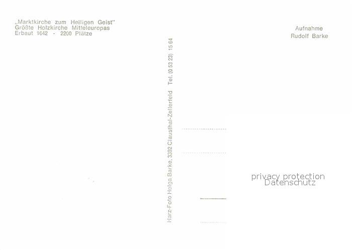 72688149 Clausthal-Zellerfeld Goslar Niedersachsen Marktkirche zum Heiligen Geist Groesste Holzkirche Mitteleuropas 17. Jhdt. postalisch nicht gelaufen Erhaltung siehe scans [FriedD77] KatCode: 11110003153004