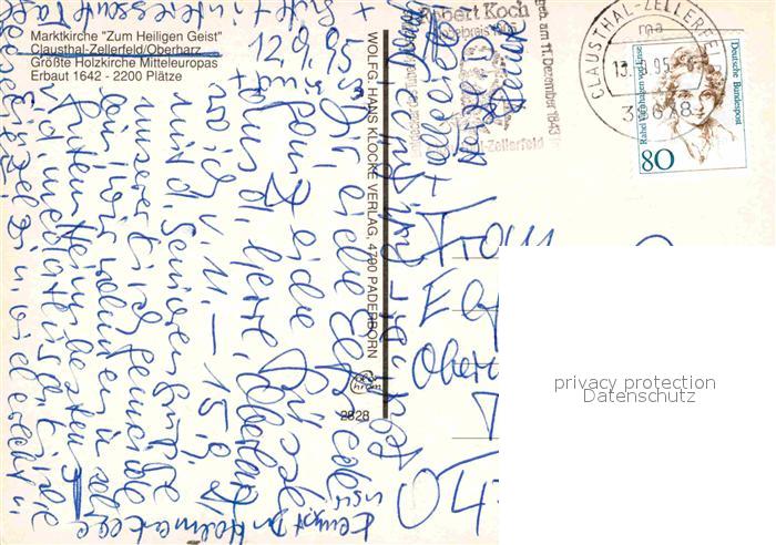 72858500 alte Postkarte Clausthal-Zellerfeld Goslar Niedersachsen Marktkirche Zum Heiligen Geist postalisch gelaufen Erhaltung siehe scans [WerneD78] KatCode: 11110003153004
