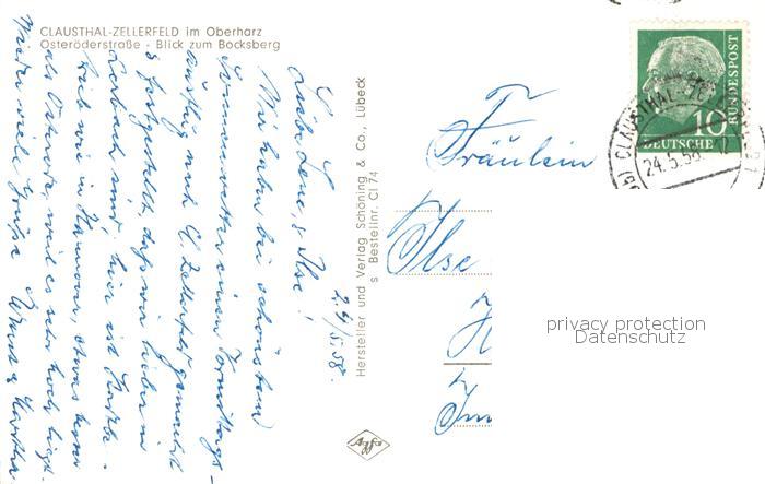 73811821 Clausthal-Zellerfeld Goslar Niedersachsen Osterroderstrasse mit Bocksbergblick postalisch gelaufen Erhaltung siehe scans [WerneD78] alte Postkarte Wern Katcode 11110003153004