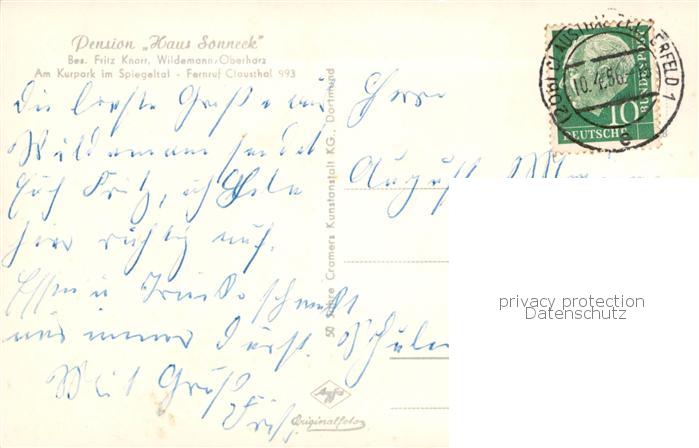 73796921 Clausthal-Zellerfeld Goslar Niedersachsen Pension Haus Sonneck postalisch gelaufen Erhaltung siehe scans [FriedD77] alte Postkarte Frie Katcode 11110003153004