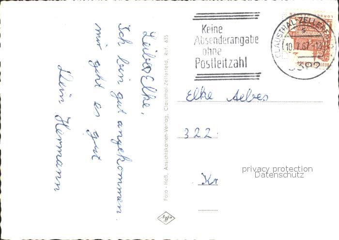 72208730 alte Postkarte Clausthal-Zellerfeld Goslar Niedersachsen Spiegeltaler Teich Bergakademie Brockenblick Kurpark Marktkirche postalisch gelaufen Erhaltung siehe scans KatCode: 11110003153004