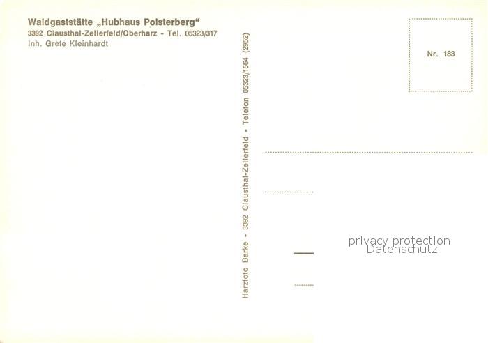 73724227 Clausthal-Zellerfeld Goslar Niedersachsen Waldgaststaette Hubhaus Polsterberg postalisch nicht gelaufen Erhaltung siehe scans [LiesaD40] Lies Katcode 11110003153004