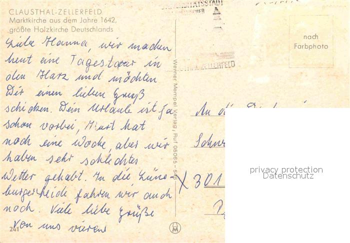 72896898 alte Postkarte Clausthal-Zellerfeld Marktkirche postalisch gelaufen Erhaltung siehe scans [KathaD81] KatCode: 11110003153004