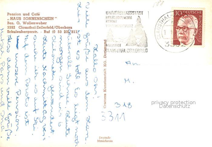 73569274 alte Postkarte Clausthal-Zellerfeld Pension-Cafe Haus Sonnenschein postalisch gelaufen Erhaltung siehe scans [PaolaD17] KatCode: 11110003153004