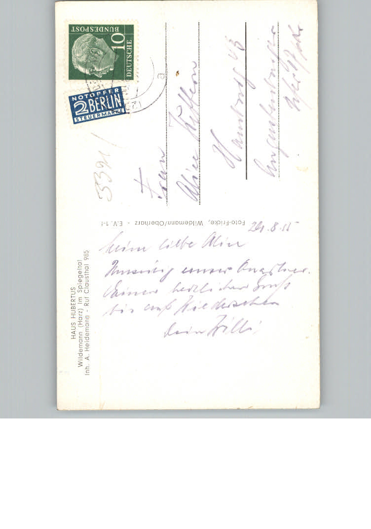31167788 Clausthal-Zellerfeld Pension Haus Hubertus postalisch nicht gelaufen KatCode: 11110003153004