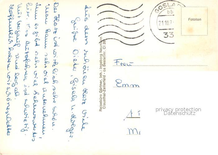 72980831 alte Postkarte Clausthal-Zellerfeld Stadtpanorama Teilansichten Gebaeude Kirche Park postalisch gelaufen Erhaltung siehe scans [FriedD77] KatCode: 11110003153004