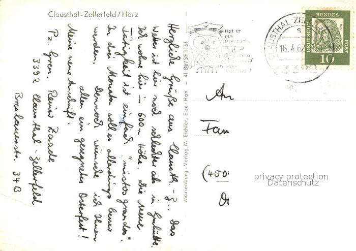 73127280 alte Postkarte Clausthal-Zellerfeld postalisch gelaufen Erhaltung siehe scans [LiesaD40] KatCode: 11110003153004