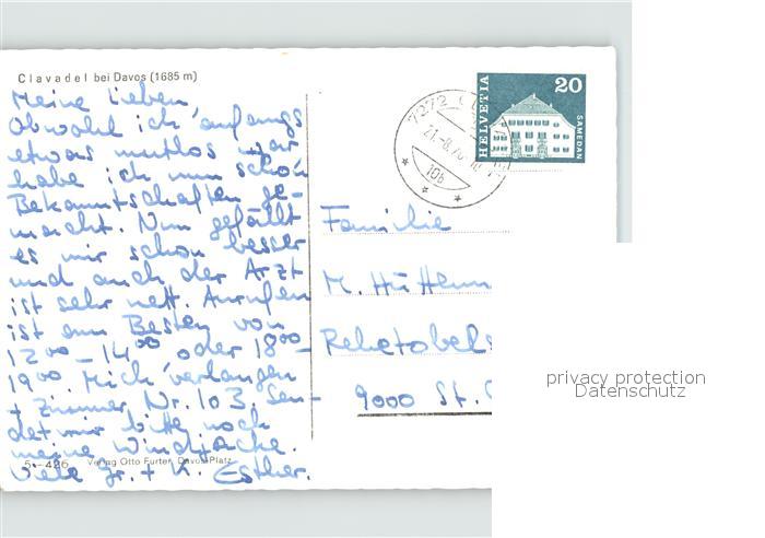 11834553 alte Postkarte Clavadel Fliegeraufnahme postalisch gelaufen Erhaltung siehe scans KatCode: 11470100350346