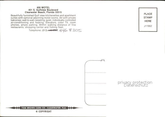 71847859 Clearwater Beach 400 Motel Fliegeraufnahme postalisch nicht gelaufen Erhaltung siehe scans KatCode: 14140110000000