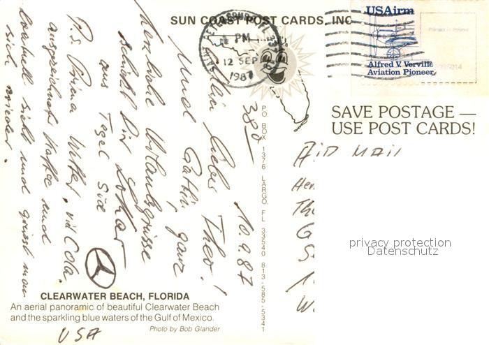 73707228 old postcard Clearwater Beach Aerial view postalisch gelaufen Erhaltung siehe scans [WerneD78] KatCode: 14140110000000