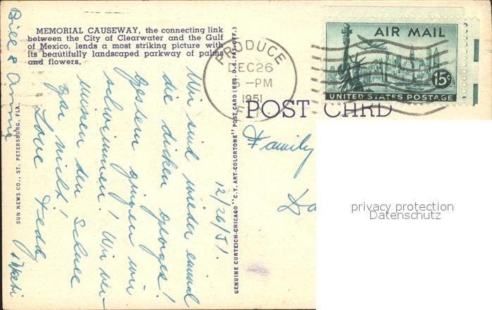 11693766 old postcard Clearwater Florida Memorial Causeway Gulf of Mexico postalisch gelaufen Erhaltung siehe scans KatCode: 14140110000000
