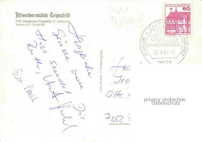 74054246 alte Postkarte Cleebronn Altweibermuehle Tripsdrill Ausflugsort Gasthaus Tierpark Museum postalisch gelaufen Erhaltung siehe scans [FriedD77] KatCode: 11110008125017