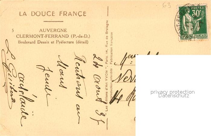 13572855 carte postale Clermont-Ferrand Boulevard Desaix Prefecture postalisch gelaufen Erhaltung siehe scans [PaolaD17] KatCode: 11170063263113